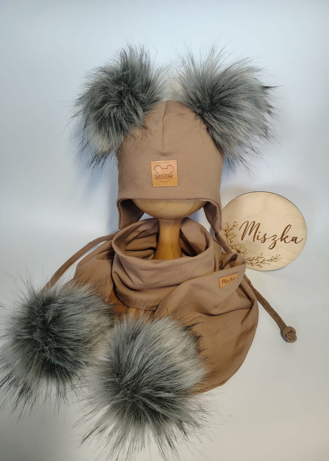 Ciepła czapka typu pilotka stworzona z myślą o komforcie najmłodszych. Wiązana pod brodą, dobrze trzyma się na główce i nie zsuwa się podczas spacerów ani zabawy. Wykonana z miękkiej, ocieplanej dzianiny, przyjemnej dla delikatnej skóry dziecka. Gładka forma i puszyste pompony nadają całości subtelnego, dziecięcego uroku.